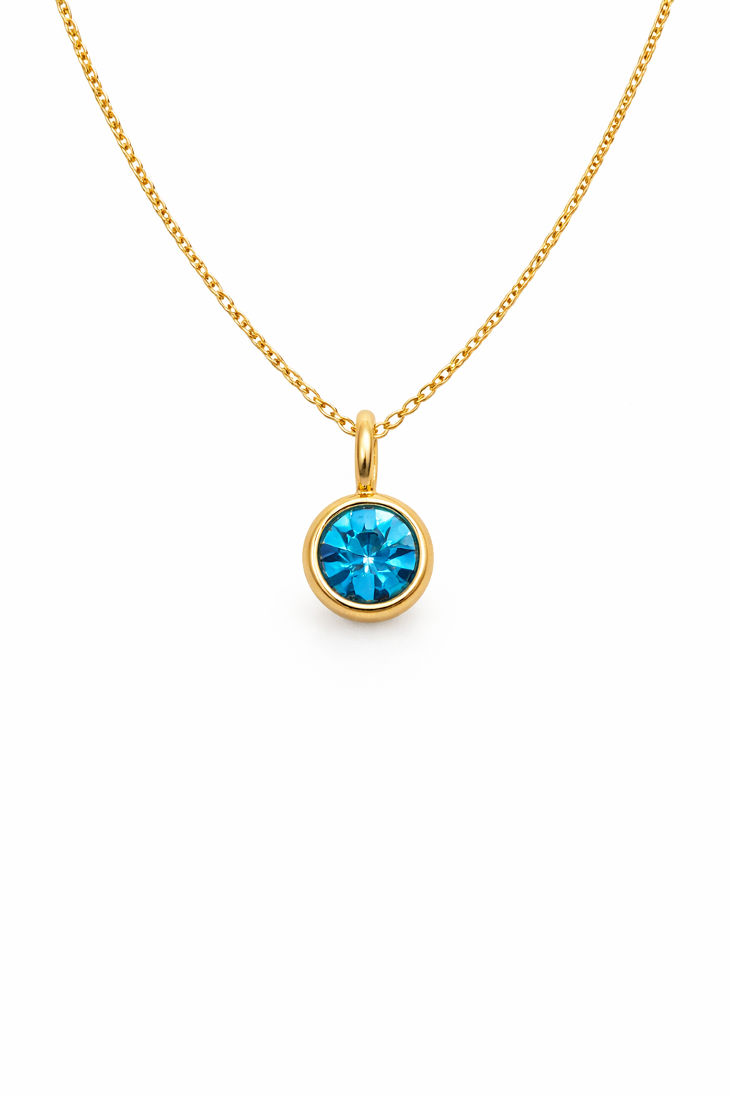 Celebrate the essence of March with this elegant aquamarine pendant necklace, the birthstone for the month. Showcasing a sparkling aquamarine gemstone in a sleek round bezel, it rests gracefully on an 18-inch chain, available in your choice of gold-plated on sterling silver or 925 sterling silver. Its calming blue tones bring a touch of serene sophistication — ideal for everyday wear or as a meaningful gift.