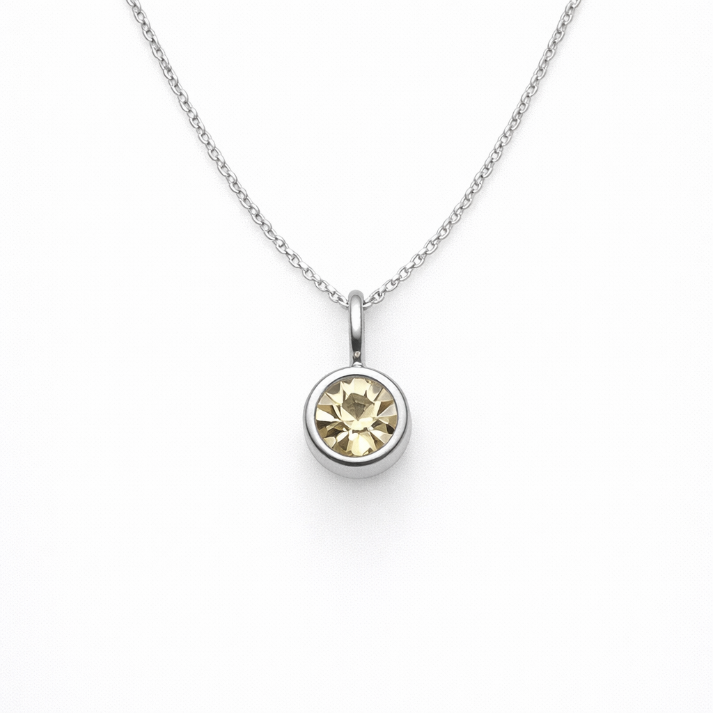 Celebrate the warmth of November with this radiant citrine pendant necklace, the birthstone for the month. Featuring a golden-hued citrine gemstone set in a refined round bezel, it rests elegantly on an 18-inch chain, available in your choice of gold-plated on sterling silver or 925 sterling silver. Its sunny tones bring a touch of cheerful sophistication — perfect for everyday wear or thoughtful gifting.