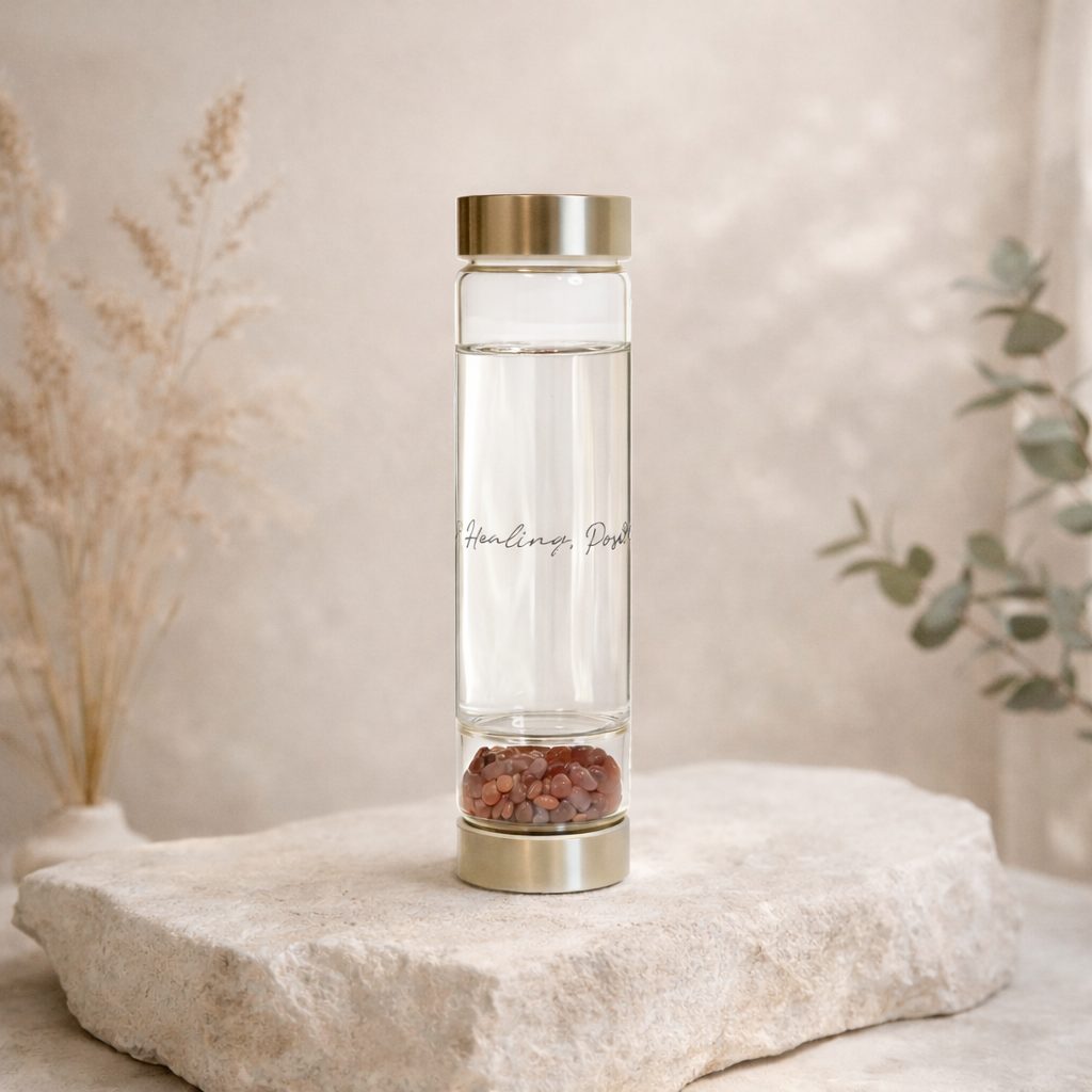 Strawberry Quartz radiates gentle energy that uplifts the heart and spirit. It encourages positivity, emotional healing, and a deeper connection with love — helping you see beauty in the little moments of everyday life. Ideal For Those seeking comfort, optimism, and self-love. Perfect for anyone who wishes to bring warmth, gratitude, and emotional harmony into their daily routine. Start your morning with lighthearted energy — sip from your Strawberry Quartz bottle during journaling, yoga, or moments of reflection. It’s also a beautiful companion during self-care days or creative pursuits that bring joy. Cleansing & Charging Rinse under running water and let it dry naturally. Recharge under soft moonlight or with a cluster of clear quartz to enhance its gentle vibration.